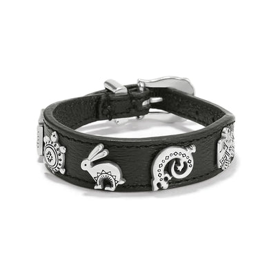 Mosaic Two Tone Leather Bar Cuff Bracelet