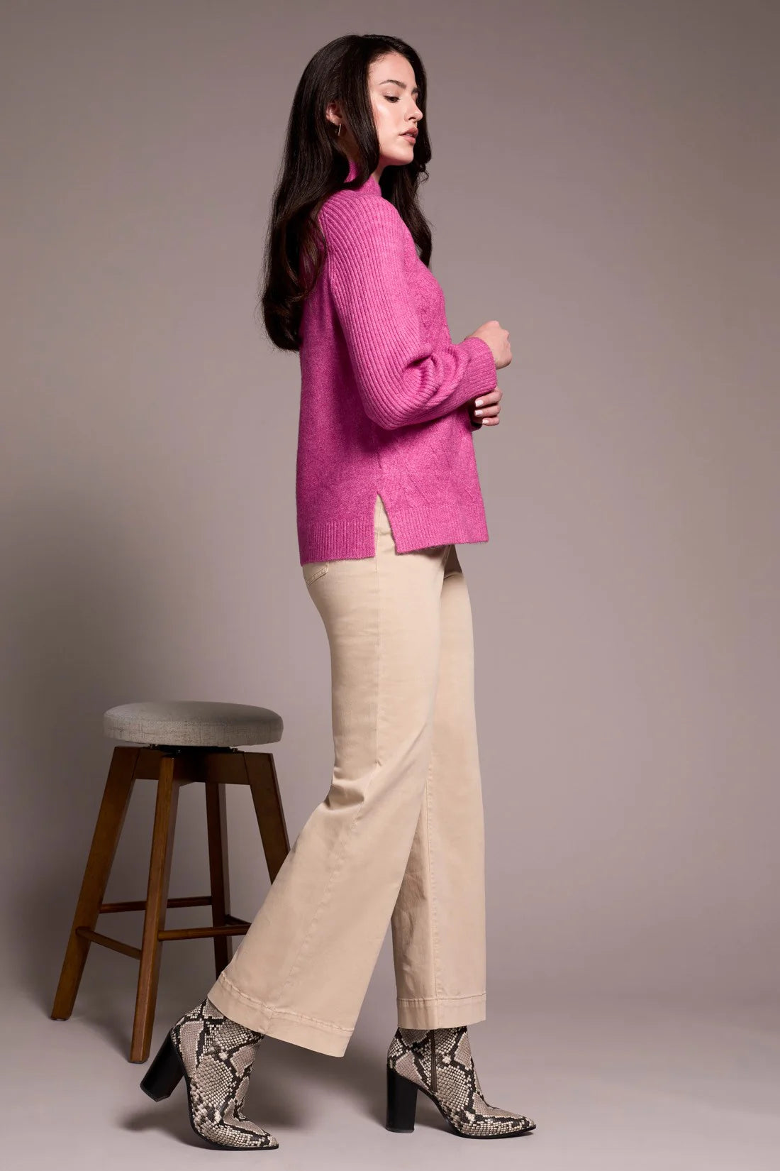 Cooler days call for this cozy sweater, crafted from a soft blend yarn with a rich texture for a luxurious feel. A sleek mock neckline and long puff sleeves add effortless elegance, while fitted cuffs create a refined finish.