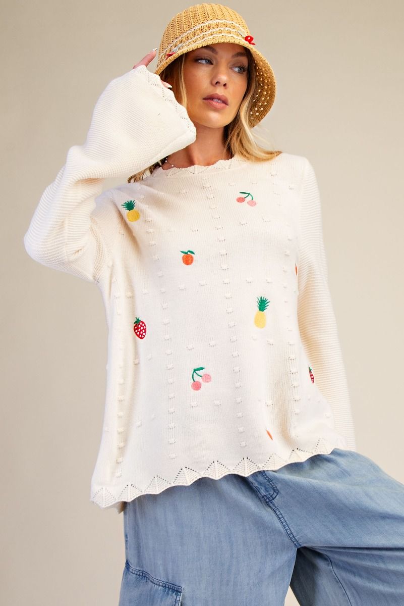 [{"id":53189969805596,"title":"SM","option1":"SM","option2":null,"option3":null,"sku":"ET28458 IVORY","requires_shipping":true,"taxable":true,"featured_image":null,"available":true,"name":"Ivory Ditzy Fruit Embroidered Sweater - SM","public_title":"SM","options":["SM"],"price":5999,"weight":0,"compare_at_price":null,"inventory_management":"shopify","barcode":"69805596","requires_selling_plan":false,"selling_plan_allocations":[]},{"id":53189969838364,"title":"MED","option1":"MED","option2":null,"option3":null,"sku":"ET28458 IVORY","requires_shipping":true,"taxable":true,"featured_image":null,"available":true,"name":"Ivory Ditzy Fruit Embroidered Sweater - MED","public_title":"MED","options":["MED"],"price":5999,"weight":0,"compare_at_price":null,"inventory_management":"shopify","barcode":"69838364","requires_selling_plan":false,"selling_plan_allocations":[]},{"id":53189969871132,"title":"LG","option1":"LG","option2":null,"option3":null,"sku":"ET28458 IVORY","requires_shipping":true,"taxable":true,"featured_image":null,"available":true,"name":"Ivory Ditzy Fruit Embroidered Sweater - LG","public_title":"LG","options":["LG"],"price":5999,"weight":0,"compare_at_price":null,"inventory_management":"shopify","barcode":"69871132","requires_selling_plan":false,"selling_plan_allocations":[]}]