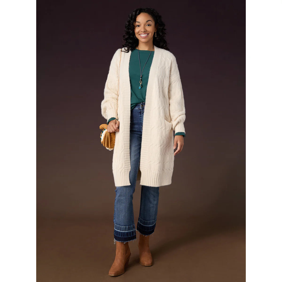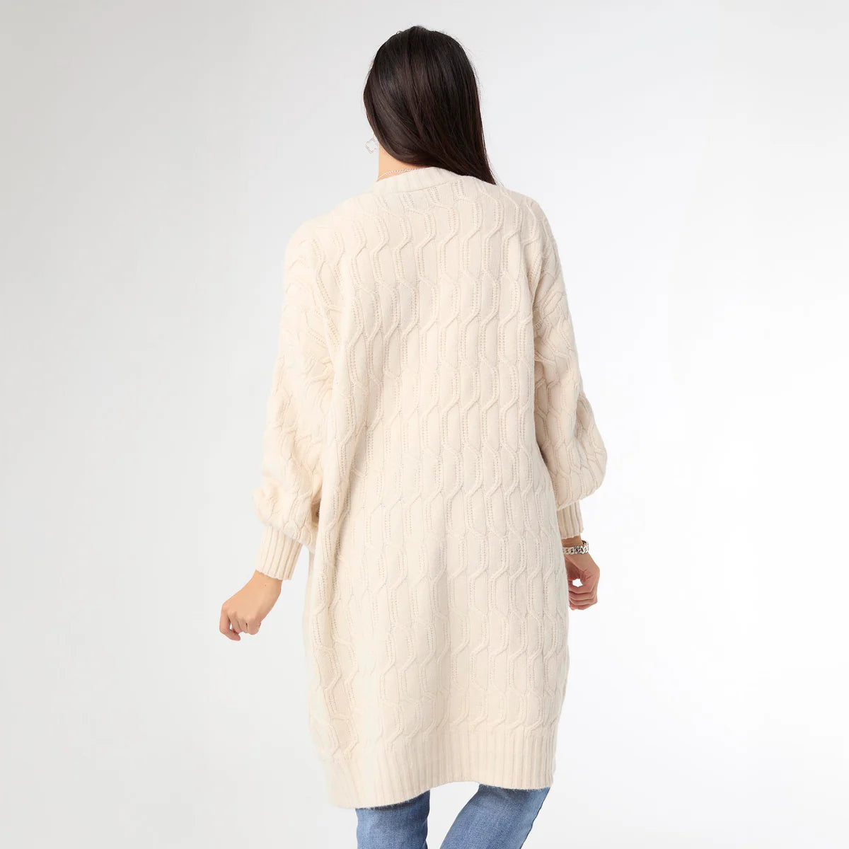 With its long sleeves, open front design, and handy front pockets, this cardigan is ideal for layering over any outfit. Its cozy knit material will keep you warm and comfortable all day long.