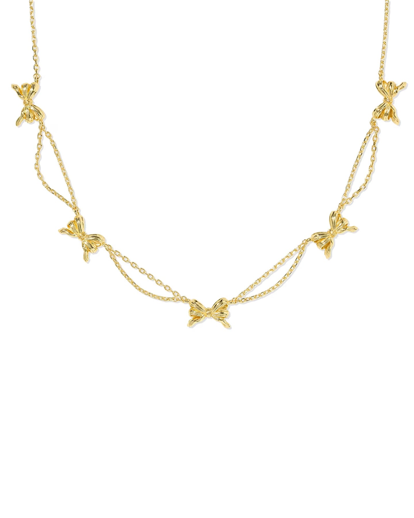 Wrap up your stack with the Bow Gold Strand Necklace. This darling design features ribbon accents on a dainty chain. Layer it with your everyday basics or favorite bow styles for a sweet (and trendy!) look.