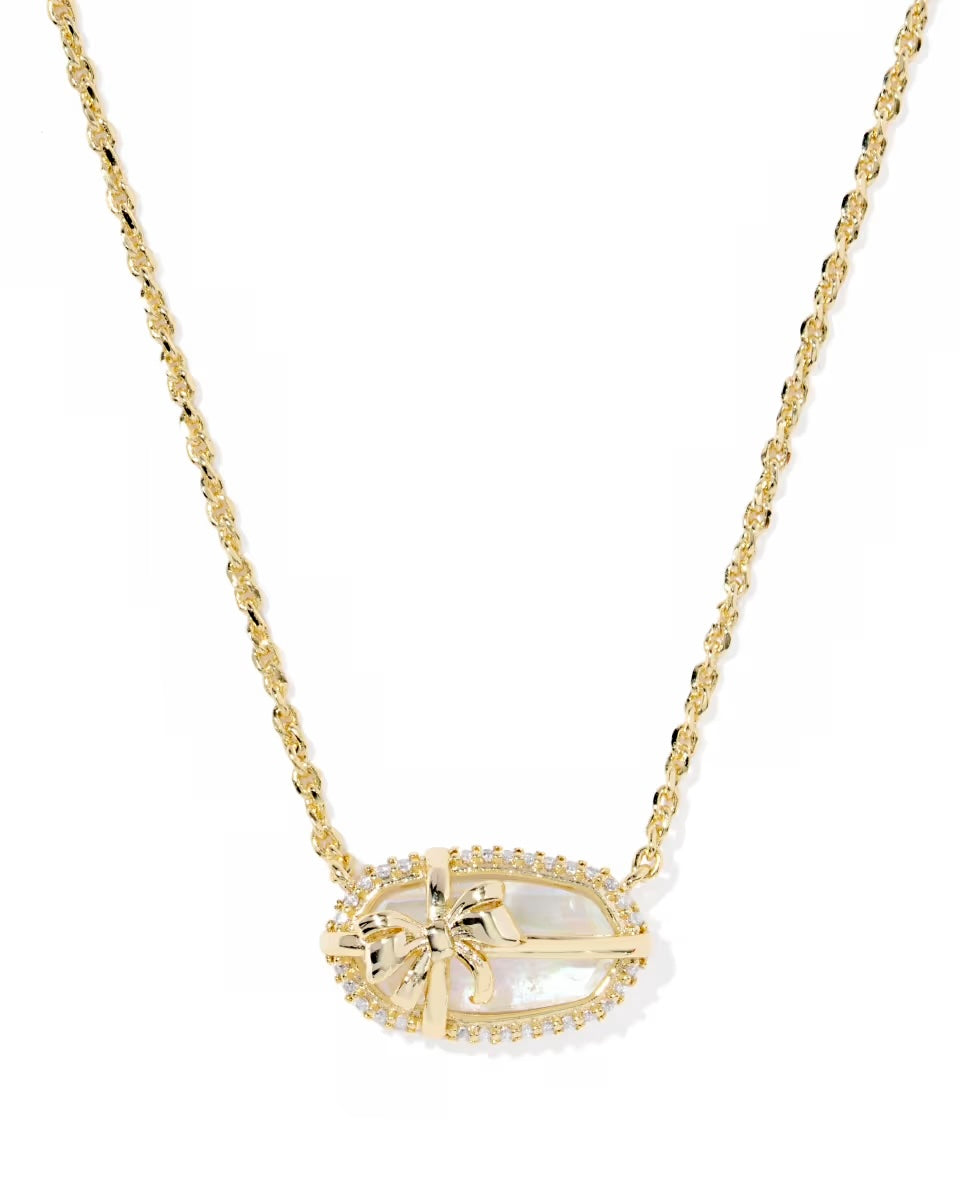 Elisa Bow Short Pendant Gold Iridescent Crystal Ivory Illusion