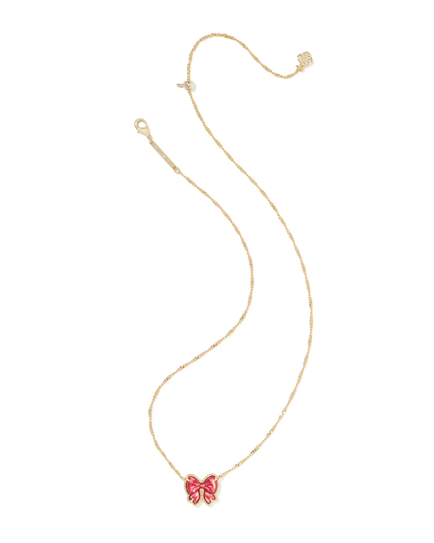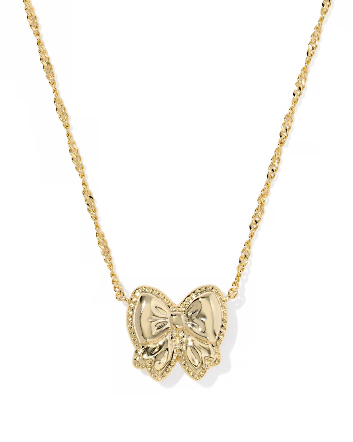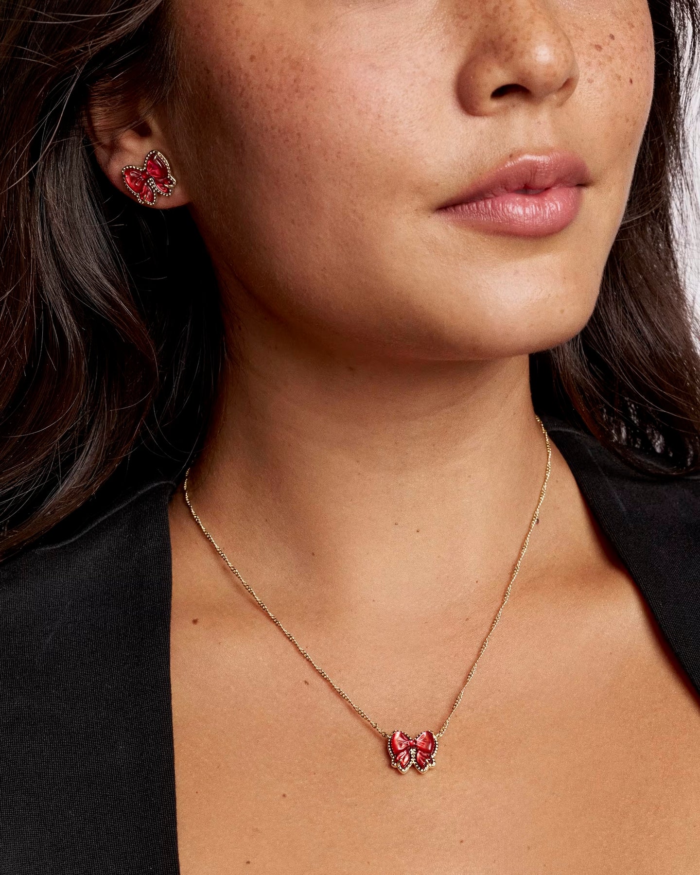 Wrap up your look with the Haley Bow Gold Short Pendant Necklace. Complete with our signature hoofprint detailing, custom-carved mother-of-pearl, and a reversible pendant for double the styling options, this necklace is a must have for any collection.