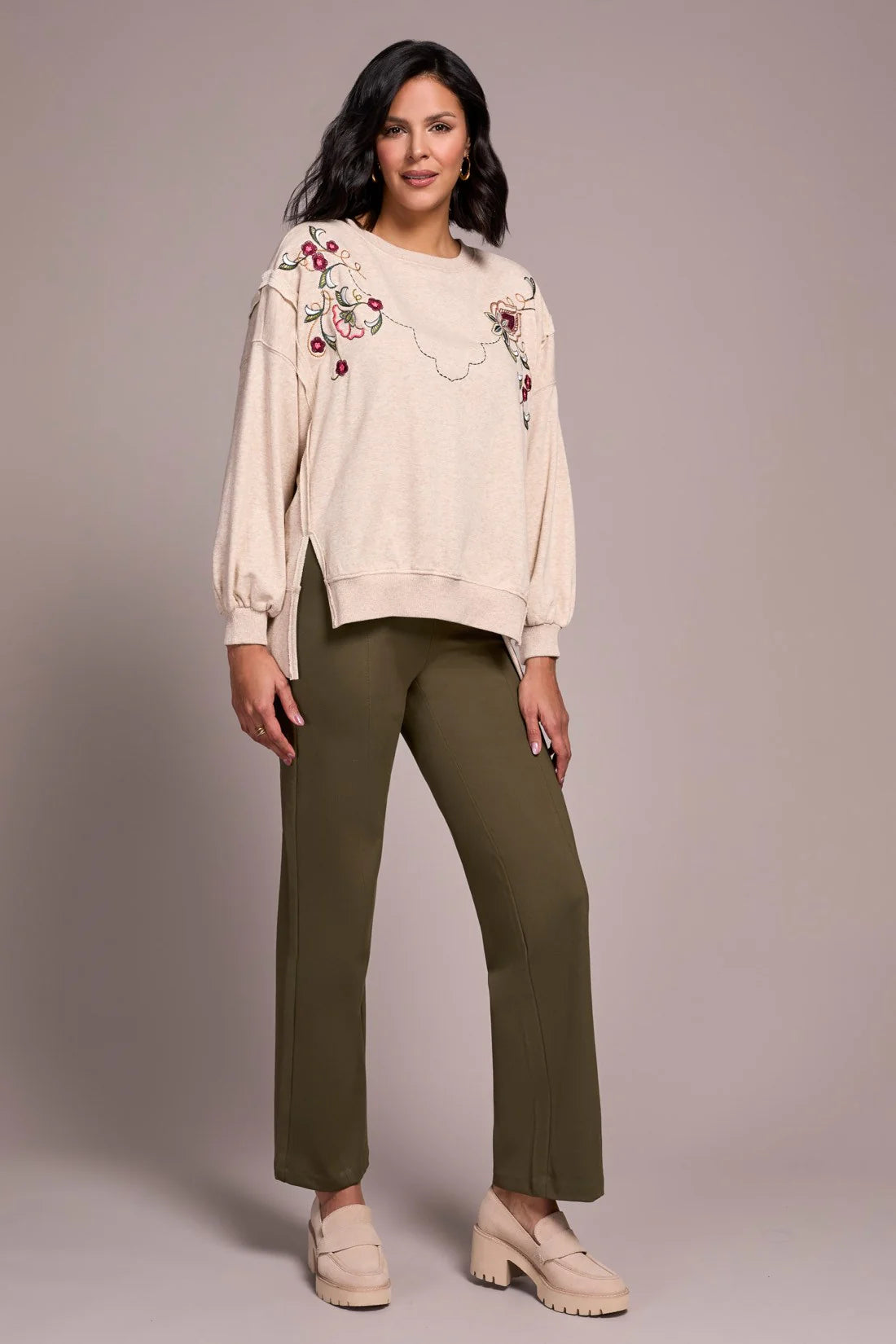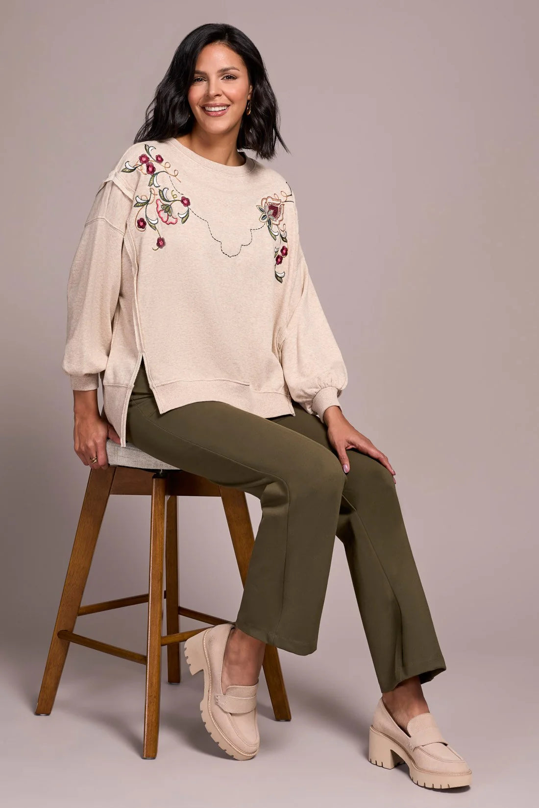 Stay effortlessly cozy in a top crafted from lightweight, soft cotton-blend French terry for relaxed comfort. Featuring allover embroidery for a touch of intricate detail, it’s finished with a front slit that adds an easygoing vibe and enhances movement and breathability.