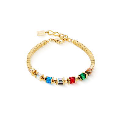 This bracelet brings the Sparkling Moments colour trend to your wrist - with a powerful mix of Swarovski® crystals in multicolour, shiny gold-plated stainless steel and accentuating hematite cubes. The mix of colours and clear shapes makes the design particularly versatile - for looks with charisma.
